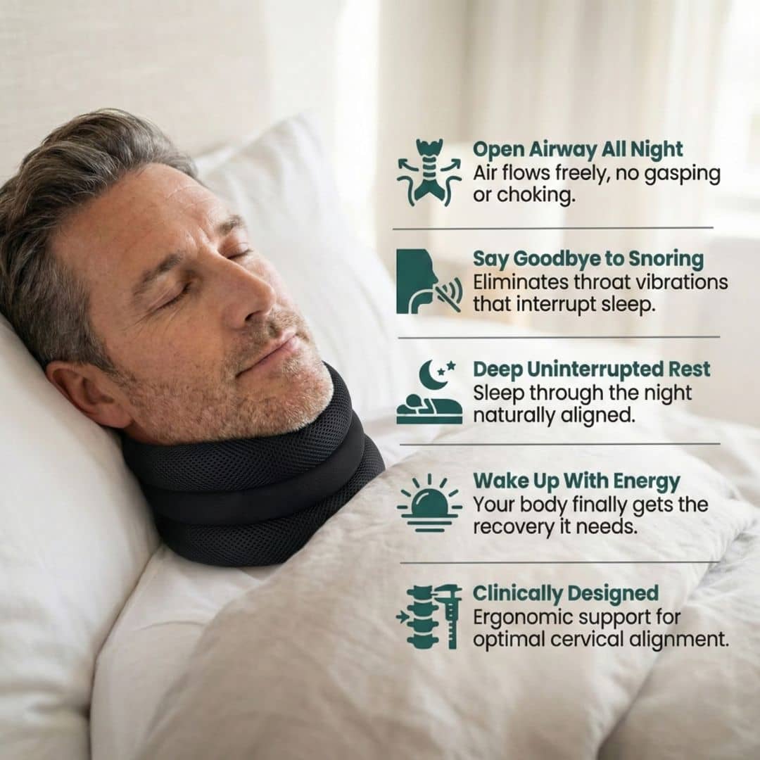 Airway stability during sleep is strongly influenced by neck position. Supportive alignment can make a meaningful difference in breathing quality.