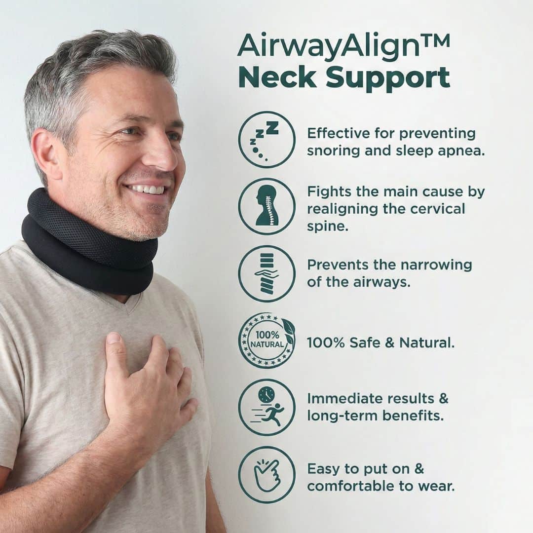 AirwayAlign™ supports proper neck positioning to help reduce snoring and improve nighttime breathing — without machines or medication.